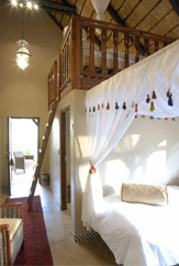 We accommodate a maximum of 42 guests in 14 rooms consisting of seven semi-detached chalets. There are seven queen bedrooms. The other seven family bedrooms are furnished with four three quarter beds, of which two beds are fitted on a loft for the fit traveller whishing to climb a steep ladder. All beds are of extra length and the inviting bohemian looking rooms are equipped with mosquito nets, hair dryer, electric kettle, digital safe and telephone facilities. Electric appliances all run on 220/240 volts.